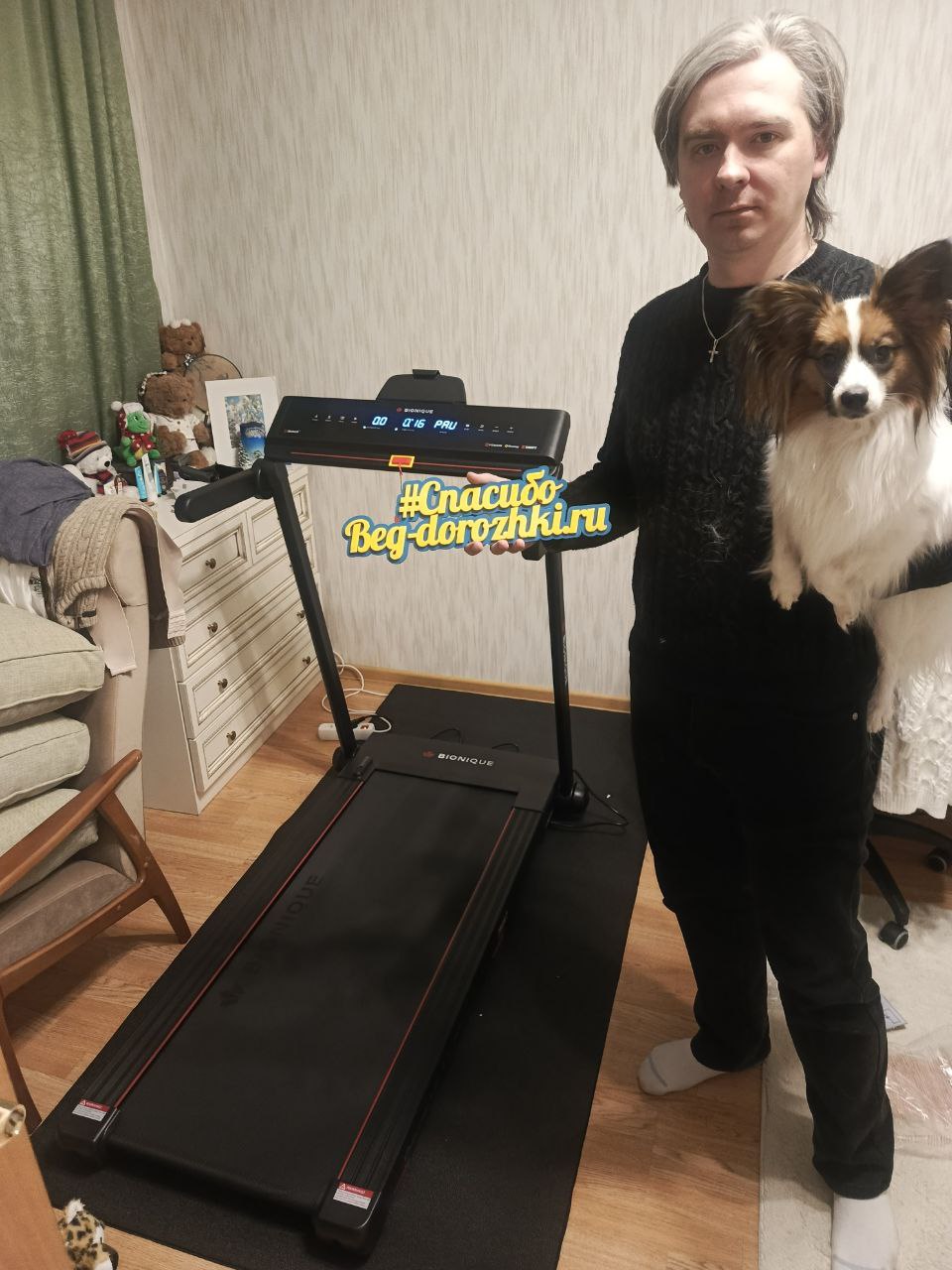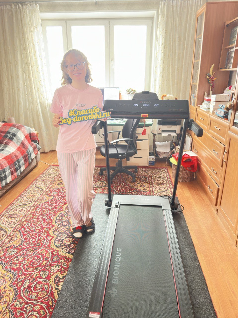 Эта дорожка — настоящая находка для тех, кто живет в небольшой квартире и считает каждый квадратный метр. С моим ростом 171 см я бы и сама с удовольствием поставила такую дома — она маленькая, аккуратная и невероятно легко складывается.