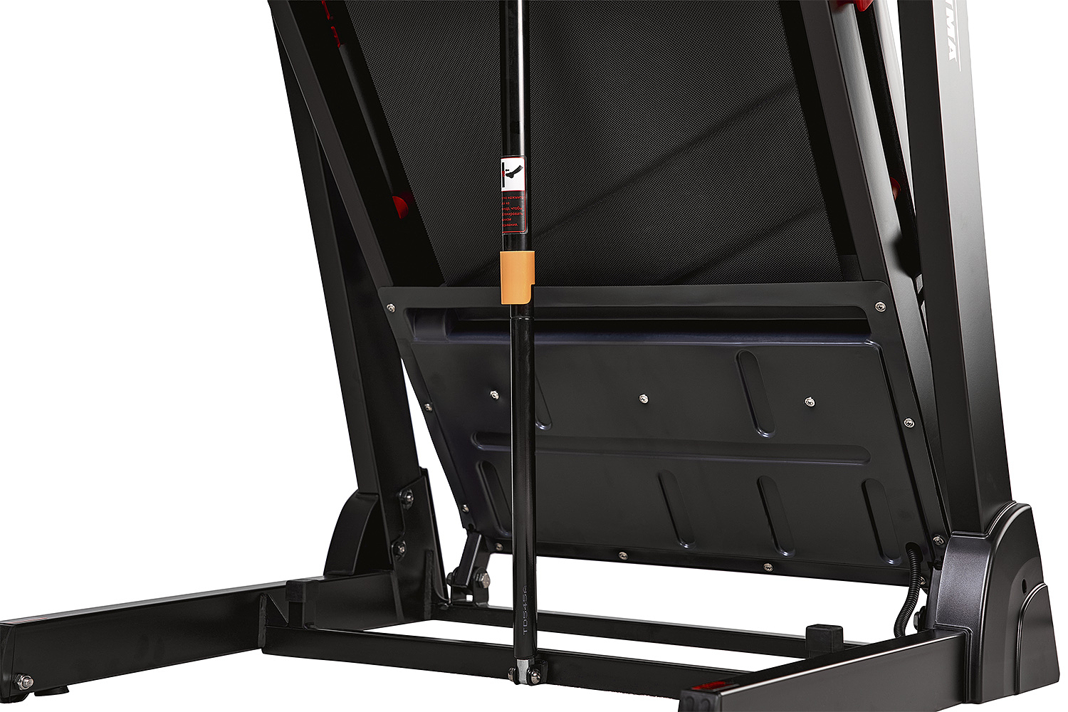 - Гидравлическая система складывания «JUST CLICK» существенно облегчает складывание тренажера, а при раскладывании обеспечивает медленное опускание полотна в последней фазе, гарантируя легкость и безопасность.