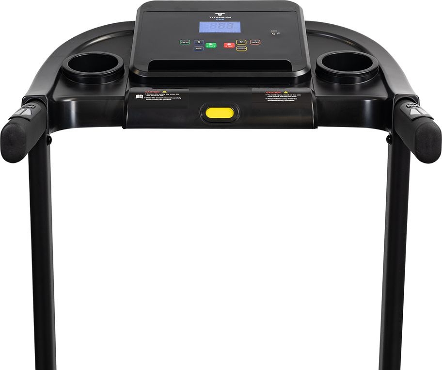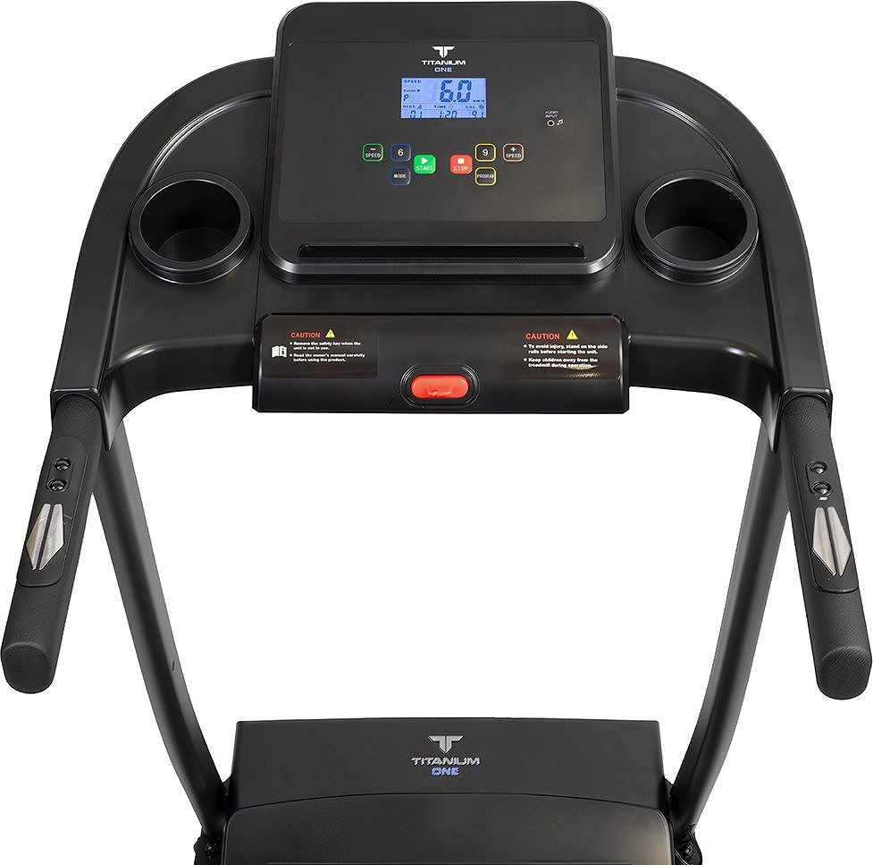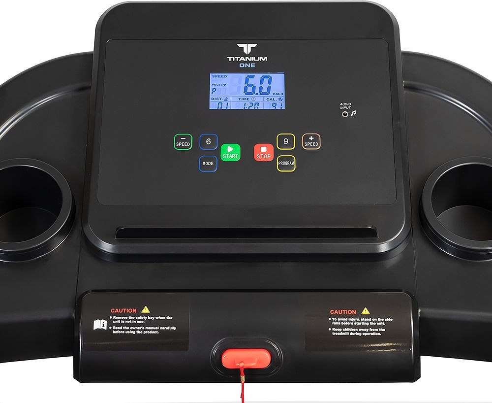 За движение отвечает надежный двигатель пиковой мощностью 2 л.с. постоянного тока. Скорость регулируется в диапазоне от 1 до 12 км/ч - на максимуме этого вполне хватает для бега начинающих и продвинутых спортсменов. Размеры бегового полотна составляют 112 см. в длину и 40 см. в ширину - обеспечивает комфорт и безопасность при ходьбе и беге на любых скоростях, включая максимальные. Угол наклона регулируется механически(вручную) и имеет три положения. Несмотря на сравнительно небольшие размеры бегового полотна, тренироваться на Titanium One Т30 Special blue может пользователь ростом вплоть до 190 см, но есть ограничение по максимальному весу пользователя - 120 кг. Если вес превышает это значение, следует обратить внимание на модели уровнем выше. Амортизация, настроенная на средний уровень жесткости, представлена 4-я резиновыми ножками системы Softwave+™ и двумя плоскими 2 плоских эластомерами EasyRubb™. Это базовая амортизация, она в состоянии погасить часть ударной нагрузки на суставы и минимизировать уровень шума. Для тренировки большинства пользователей не испытывающих проблем с суставами, при наличии качественной спортивной обуви уровень амортизации будет достаточным. За качество скольжения отвечает многослойное полотно Diamond™ толщиной 1,6 мм швейцарского бренда Habasit и парафинированная дека толщиной 15 мм. Для создания дополнительной мягкости лучше заниматься на ковре или специально предназначенном для этого полиуретановом коврике для фитнес оборудования.