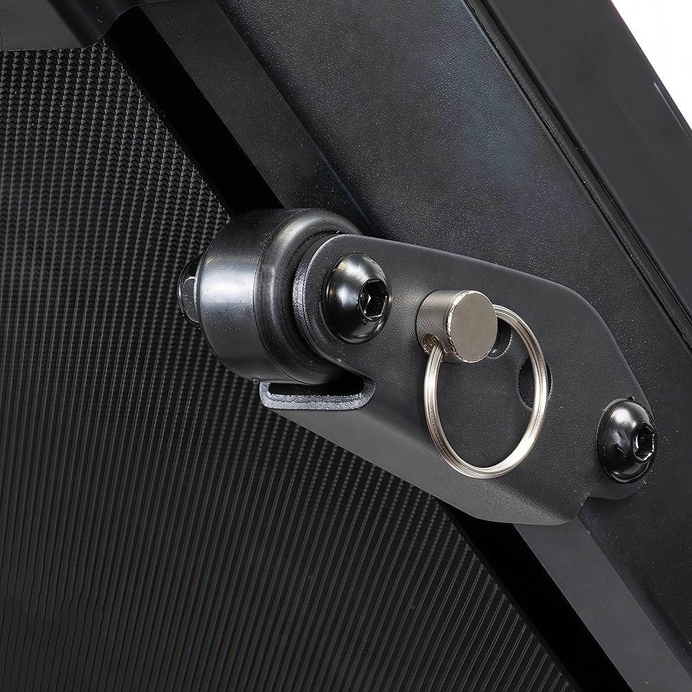 Тренировочный компьютер представлен синим многофункциональным дисплеем диагональю дюймов (7,6 см). На экран одновременно выводятся все основные параметры тренировки - время, скорость, дистанция, потраченные калории и пульс. В программный пакет входят 12 предустановленных программ, направленных на тренировку скоростных качеств, выносливости, укрепления сердечно-сосудистой системы и похудания. Помимо предустановленных программ, можно воспользоваться программами обратного отсчета дистанции, времени или затраченных калорий. Для считывания показаний пульса в поручни дорожки вмонтированы контактные сенсорные датчики. Благодаря быстрым клавишам управления на поручнях можно отрегулировать скорость, не снимая рук с поручней, а так же включить или выключить тренажёр. Разнообразить тренировку поможет мультимедийная составляющая - в консоль дорожки установлены колонки мощностью 3 ватта, а носителями аудио файлов выступают MP3-плеер или смартфон. Перемещение дорожки происходит за счет 2-х транспортировочных роликов.